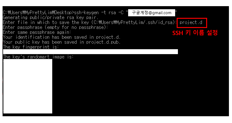 b) 명령프롬프트(cmd) → Persistent home directory로 이동하여 SSH 키 생성
