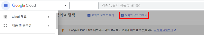 VPC 네트워크 > 방화벽 > 방화벽 규칙 만들기 클릭
