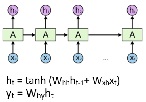 RNN은 체인으로 연결된 구조 데이터에 사용할 수 있는 특별한 구조로, 이전 타임 스텝의 hidden과 현 타임 스텝의 인풋을 결합하여 현재의 hidden representation을 생성하는 것이 특징이다.