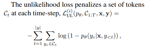 > unlikelihood loss(UL)를 사용하면 동어 반복을 줄이고 overrepresented 토큰 문제를 완화할 수 있다는 연구가 있었음.