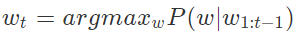 : 타임스텝 t에서 가장 높은 확률을 가지는 토큰을 다음 토큰으로 선택하는 전략